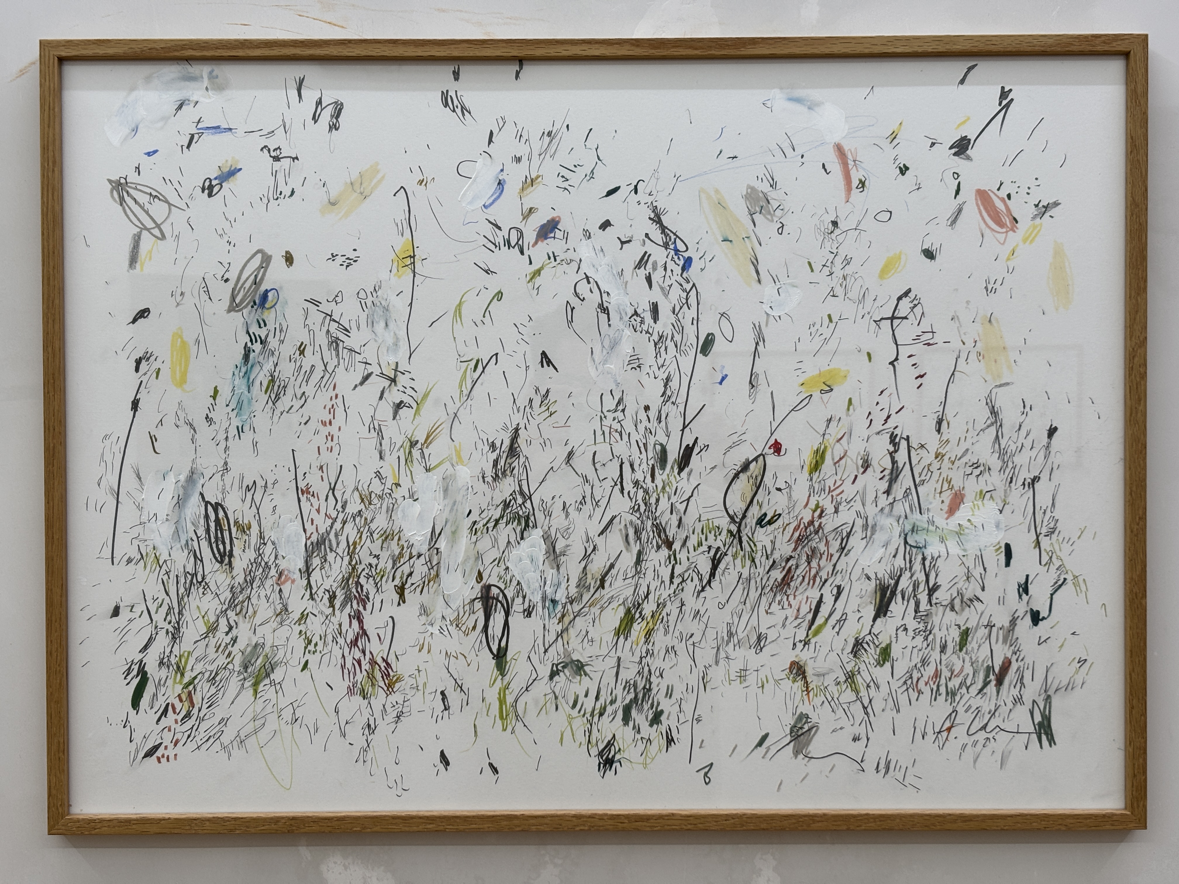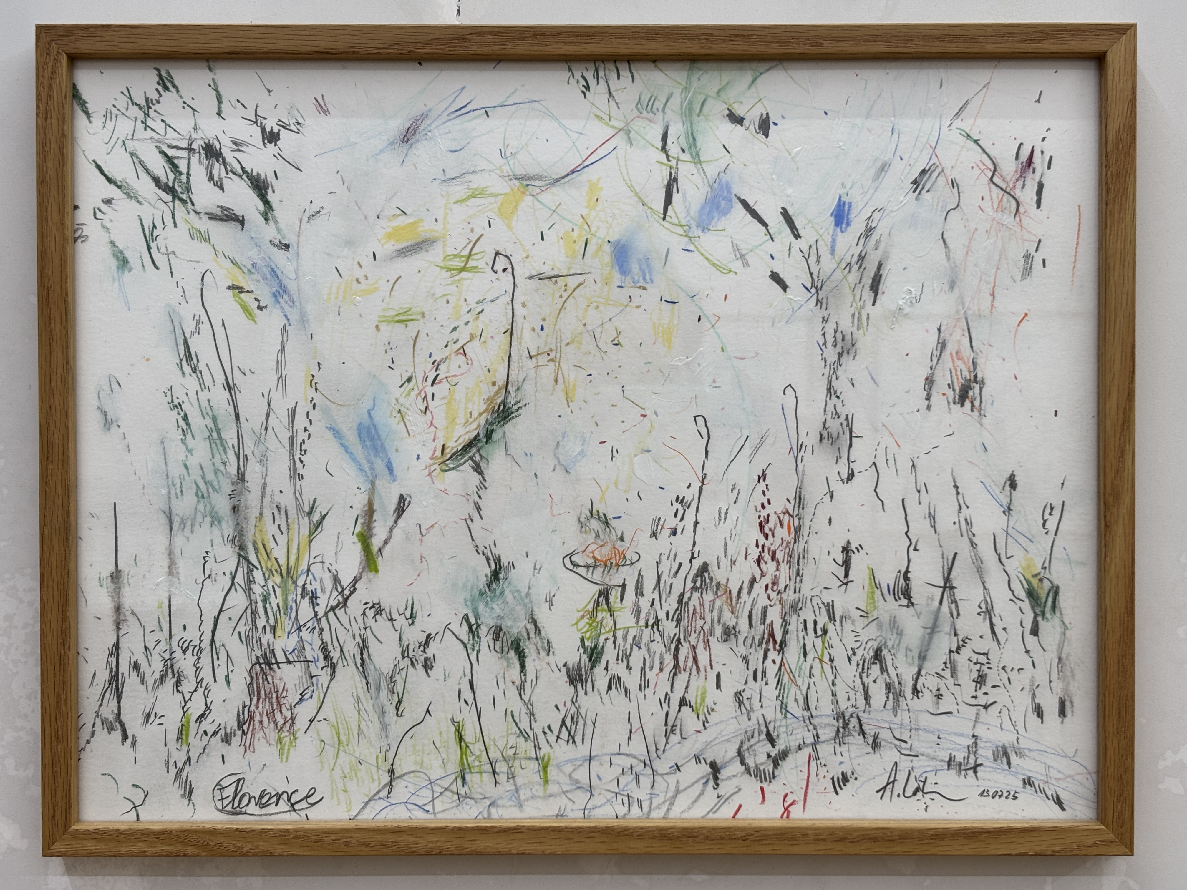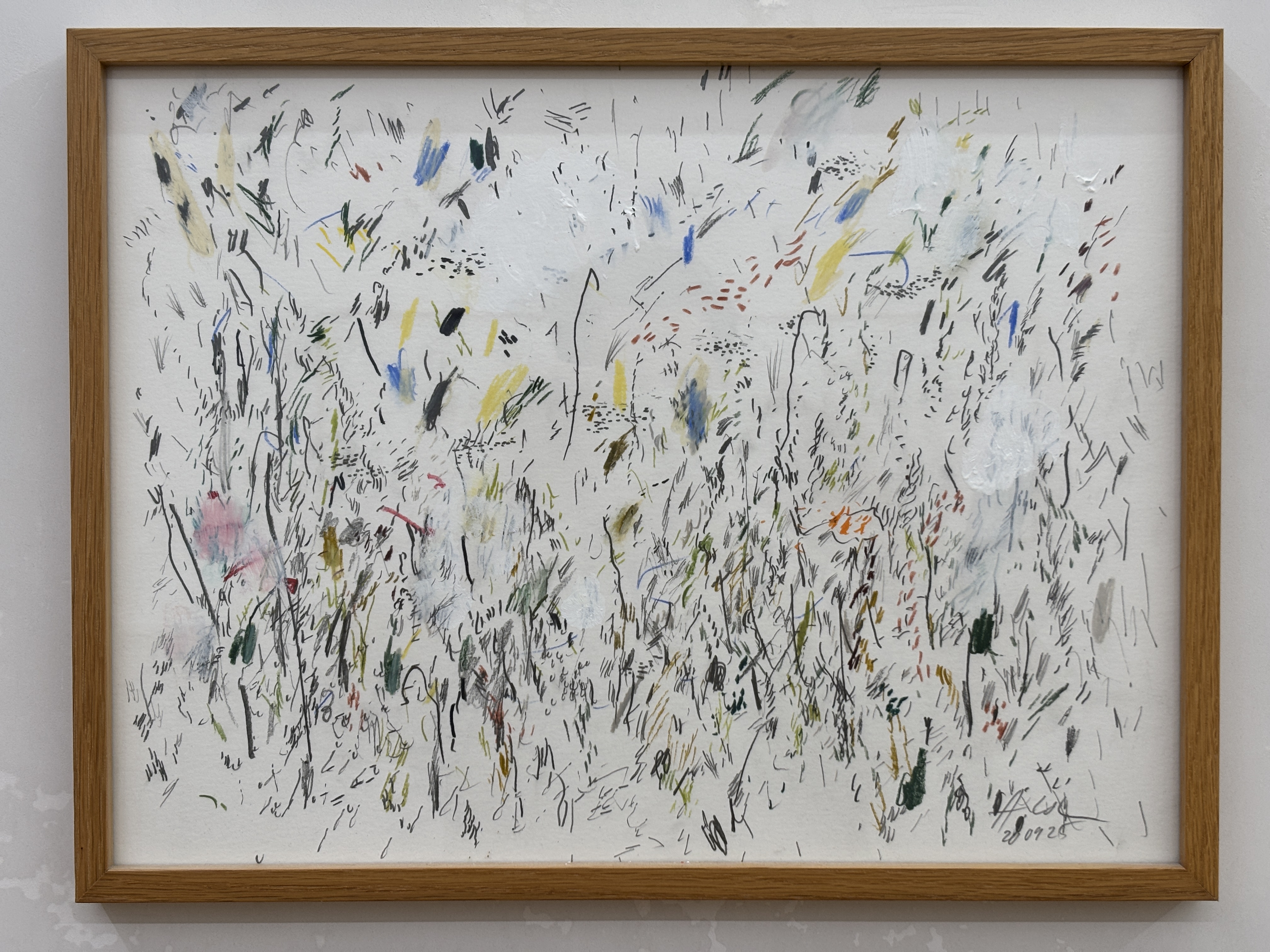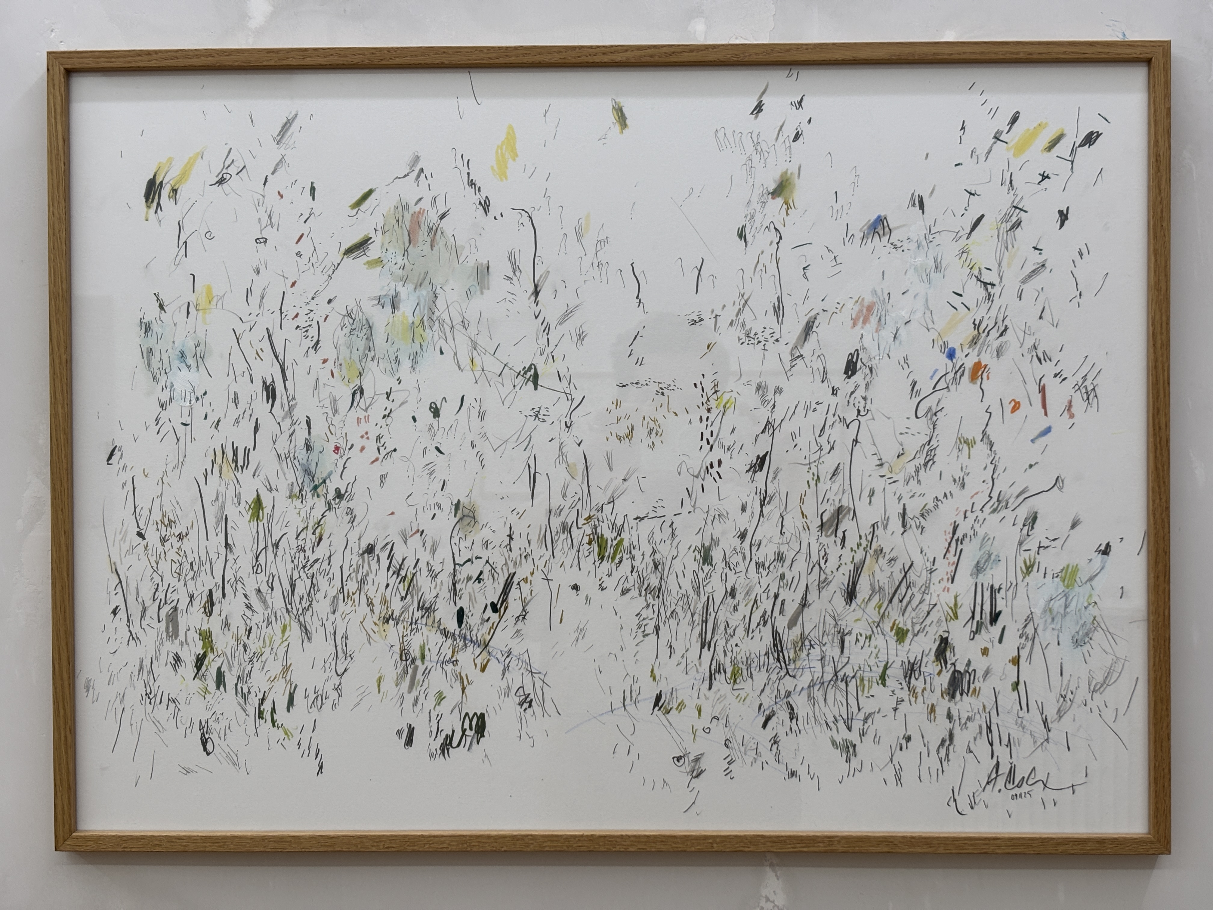 Die expressiven Landschaftszeichnungen greifen das Draußen auf und verwandeln es in Spuren, Markierungen und Reibungen. Linien und Farbe werden zu Fragmenten eines Sehens, das sich in die Erinnerung zurückzieht – ein Bild, das im Entstehen ist und zugleich vergeht.